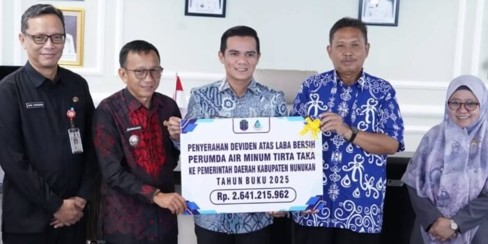 NUNUKAN – Kinerja Perusahaan Umum Daerah (Perumda) Air Minum Tirta Taka Kabupaten Nunukan menunjukkan tren positif. Hal ini ditandai dengan penyerahan dividen