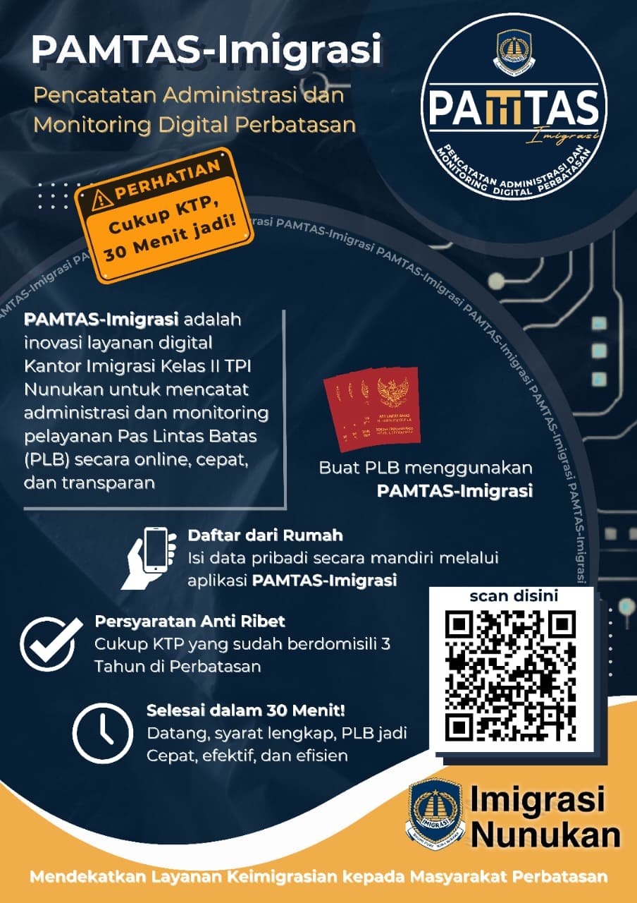 “Inovasi PAMTAS-Imigrasi merupakan inisiatif langsung Bapak Kepala Kantor sebagai bentuk transformasi pelayanan berbasis digital di wilayah perbatasan. Sistem ini memungkinkan pencatatan administrasi PLB dilakukan secara tertib, cepat, dan transparan,” ujar Donly.